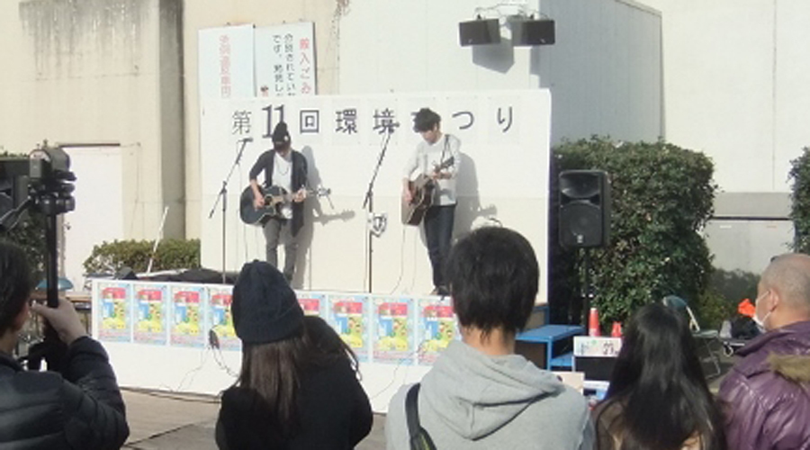 ステージでは、ホッチのダンス、九小ジュニアバンド(写真の3枚目)、環境まつり実行委員会によるビンゴダンス、国分寺市出身のアコースティックデュオ 「ふたば」のライブ(写真の4枚目)、バルーンアートなどがあり、盛り上がっていました。